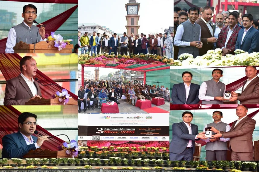 In a spectacular celebration of nature’s hues, the historic Ghanta Ghar in Lal Chowk today bloomed into a riot of colors as the 3rd Gul-e-Dawood (Chrysanthemum) Show–2025, themed “Autumn Flower Festival,” was inaugurated by the Divisional Commissioner Kashmir.