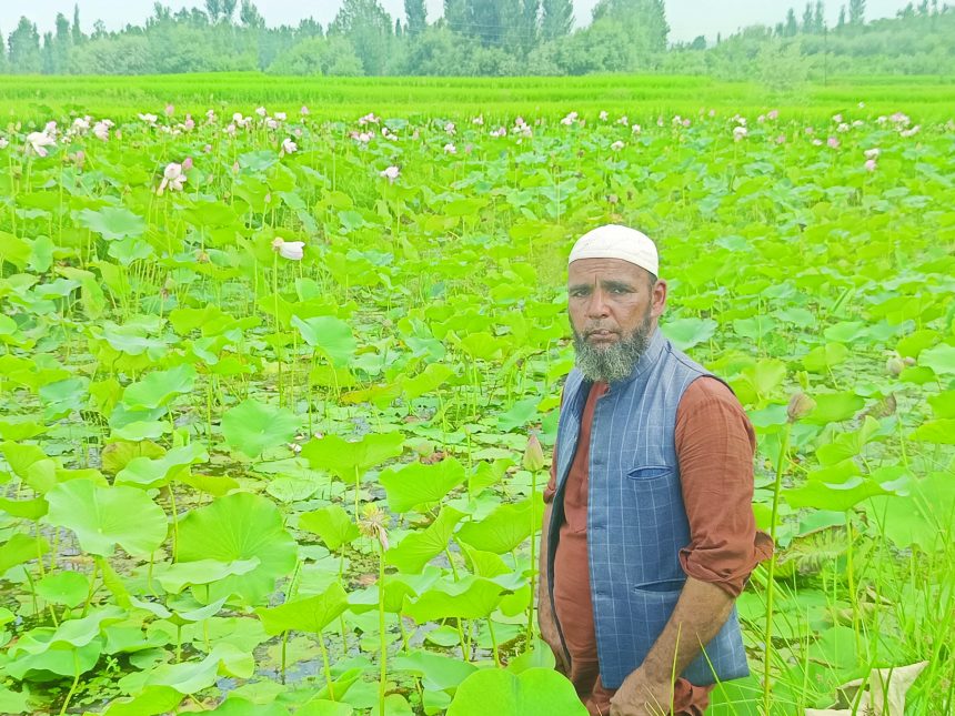 In a unique agricultural innovation, a progressive farmer from Warihama village in Budgam district has successfully cultivated nadru (lotus stems) on land that remains waterlogged throughout the year, marking a first for the region.