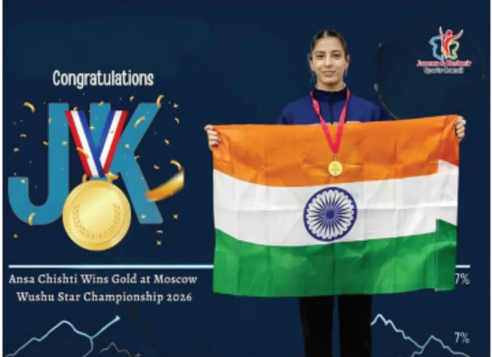 Jammu and Kashmir’s rising and top-ranked wushu star Ansa Hassan Chishti clinched a gold medal at the Moscow Wushu Star International Championship 2026, delivering a standout performance while representing India on the global stage, J&K Sports Council said on Sunday.Chishti’s achievement, as per a statement shared by J&K Sports Council on their social media handle Facebook, marks a significant milestone for J&K, with the athlete showcasing exceptional skill, discipline, and composure against top international competitors in Moscow.