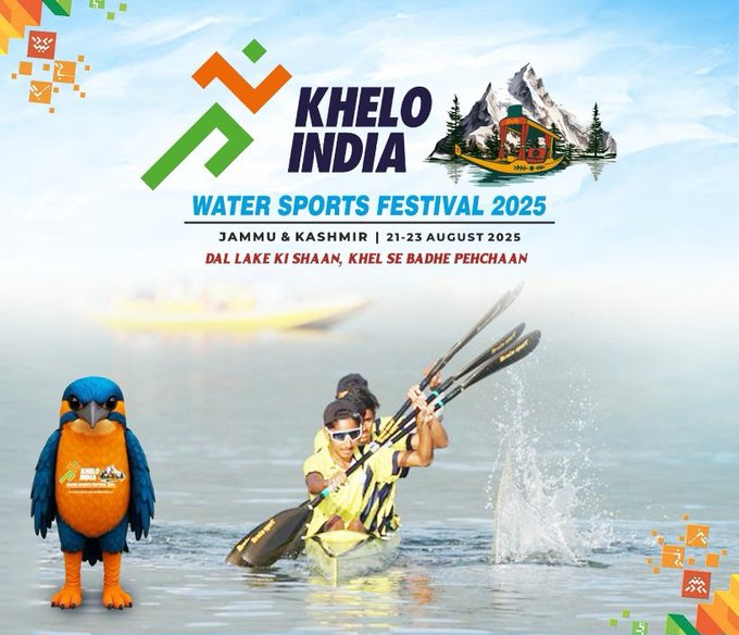 In Jammu & Kashmir, the three-day Khelo India Water Sports Festival is beginning today, till Saturday, August 23, at the iconic Dal Lake in the summer capital Srinagar. The event is conceived as a celebration of Jammu and Kashmir’s culture and ecology. The Mascot of the Khelo India Water Sports Festival is inspired by the Himalayan Kingfisher, which reflects adventure, energy, and a profound connection to nature.