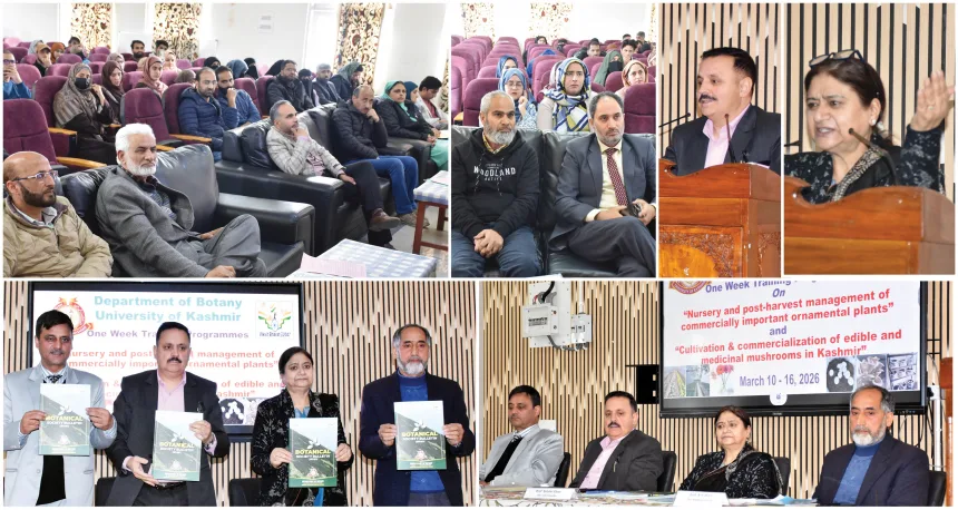 The University of Kashmir (KU) concluded week-long entrepreneurship training programmes on “Nursery & Post-Harvest Management of Commercially Important Ornamental Plants” and “Cultivation & Commercialisation of Edible and Medicinal Mushrooms in Kashmir” at the Main Campus.