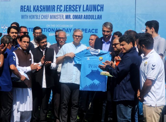 Chief Minister Omar Abdullah today unveiled the special edition “Peace Jersey” of Real Kashmir FC, designed in collaboration with iconic Danish sportswear brand Hummel, at a ceremony held at TRC Ground Srinagar.