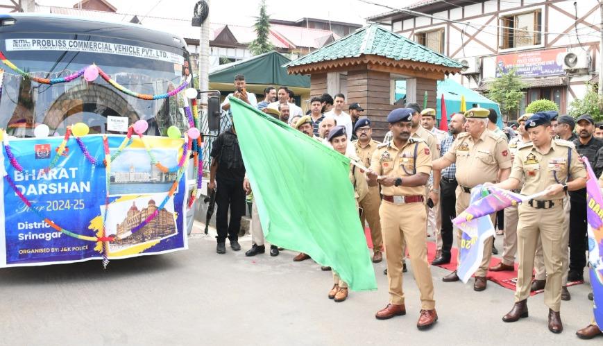 As part of the Civic Action Programme, the Jammu and Kashmir Police on Wednesday flagged off a group of 84 students from Srinagar for a five-day Bharat Darshan tour. The group, accompanied by five caretakers, was flagged off by Senior Superintendent of Police (SSP) Srinagar, Dr. G.V. Sundeep Chakravarthy – IPS, during a ceremony held at District Police Lines (DPL) Srinagar.