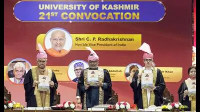 Beginning his address with “Bharat Mata is the most powerful and the most merciful”, Radhakrishnan appreciated the university’s expansion to campuses in Anantnag and Baramulla.