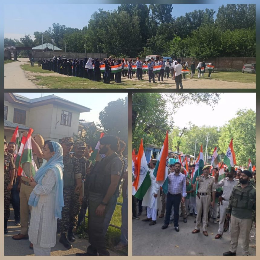 Students, youth and general public participated in huge numbers in these rallies. The participants in these rallies sang the National Anthem, patriotic songs and waved the Tricolour. In Sopore, police along with civil admin organised ‘Tiranga Bike Rally’, flagged off from MET Ground Sopore and saw enthusiastic participation from youth, community members, civil society representatives, and officers from Police, CRPF, and Civil Administration, including ADC Sopore.