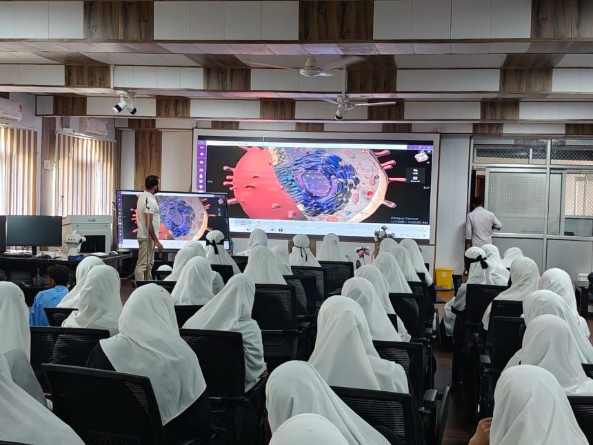 The visit also included tours of various orchards, offering practical exposure to modern horticultural practices. Later, the students moved to SKUAST-K’s Faculty of Veterinary Sciences and Animal Husbandry in Shuhama. At FVSc, the focus of awareness shifted to animal sciences. The students explored the state-of-the-art Skill Hub and Simulation Lab, observing advanced training methodologies for veterinary professionals.