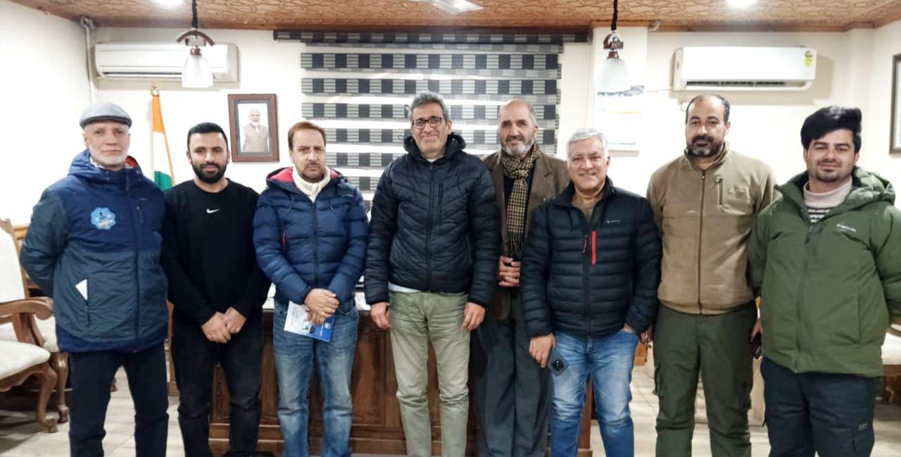 The delegation of the J&K SnowShoe Association was led by its President Tariq Ghani and included General Secretary Dr. Altaf ur Rehman and Senior Member Reyaz Wani. The meeting was also attended by Joint Director Tourism Waseem Raja, General Manager J&K Cable Car Corporation Reyaz Malik, Assistant Director Tourism Gulmarg Tahir Wani, Assistant Director Tourism Recreation Mudasir Tak, and adventure tourism expert Rauf Tramboo.