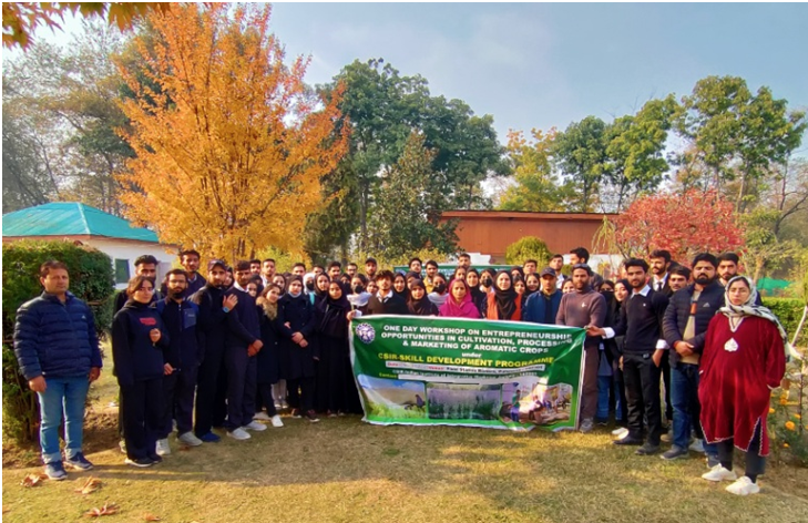 The CSIR IIIM Field Station Pulwama hosted a one-day workshop on entrepreneurship opportunities in cultivation, processing, and postharvest technology of aromatic, medicinal, and floricultural crops under CSIR Integrated Skill Initiative. The workshop, held under the auspices of Dr Zabeer Ahmad, Director, CSIR IIIM Jammu, and Er Ab Rahim, Head, RMBD&IST & Head, CSIR IIIM, Srinagar, witnessed enthusiastic participation from 75 students and faculty members from the Department of Botany, Amar Singh College, Srinagar.
