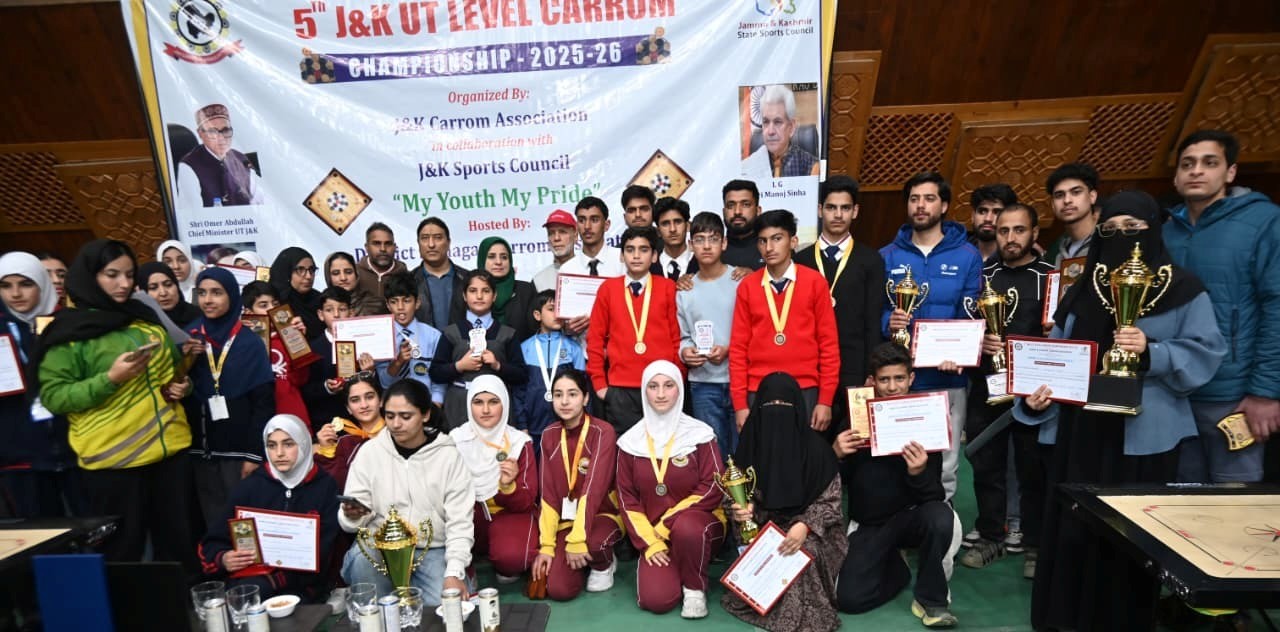 The 5th Jammu & Kashmir UT-Level Carrom Championship 2025–26 concluded successfully on Thursday at Sher-i-Kashmir Indoor Sports Complex, Wazirbagh, after three days of competitive play and enthusiastic participation.