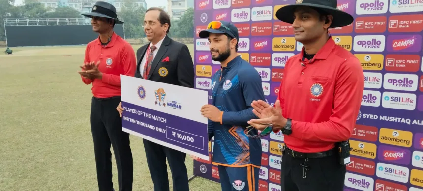 Abdul Samad (23) and Kanhaiya Wadhawan (21) provided crucial support, though Chandigarh’s Nikhil Sharma, Bhagmender Lather, and Jagjit Singh Sandhu snared two wickets apiece.