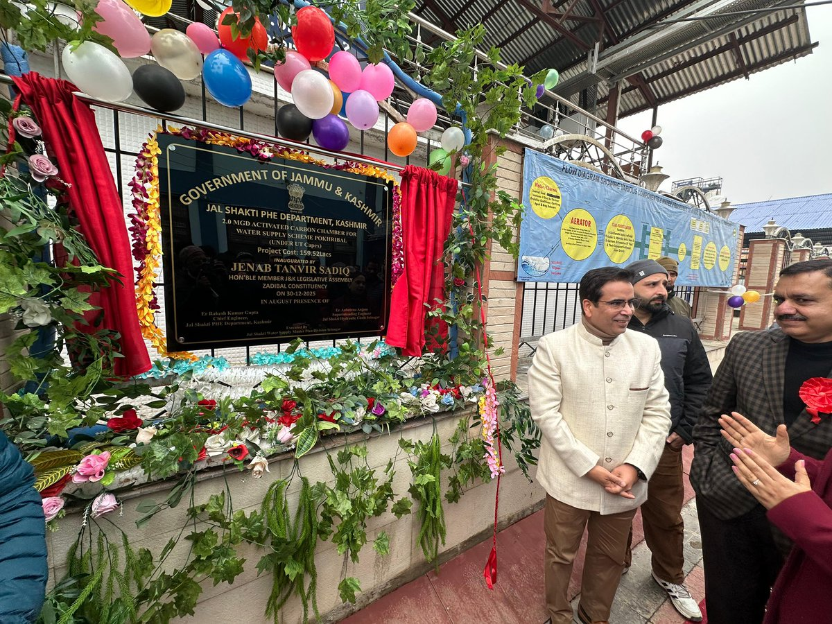 The Jammu and Kashmir Chief Spokesperson and MLA Zadibal, Tanvir Sadiq, inaugurated the first and only 2 MGD (Million Gallons per Day) Advanced Activated Carbon Filter at Pokhribal Badamwari, Zadibal, marking a major milestone in strengthening drinking water infrastructure for downtown Srinagar.