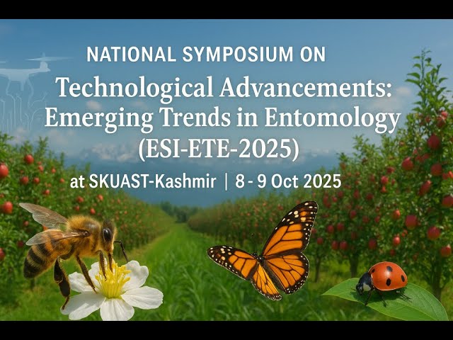 A two-day National Symposium on “Technological Advancements: Emerging Trends in Entomology (ESI-ETE-2025)” began today at Sher-e-Kashmir University of Agricultural Sciences and Technology of Kashmir (SKUAST-K), Shalimar, bringing together leading scientists, policymakers and industry representatives to deliberate on sustainable pest management and future strategies for crop and environmental health.