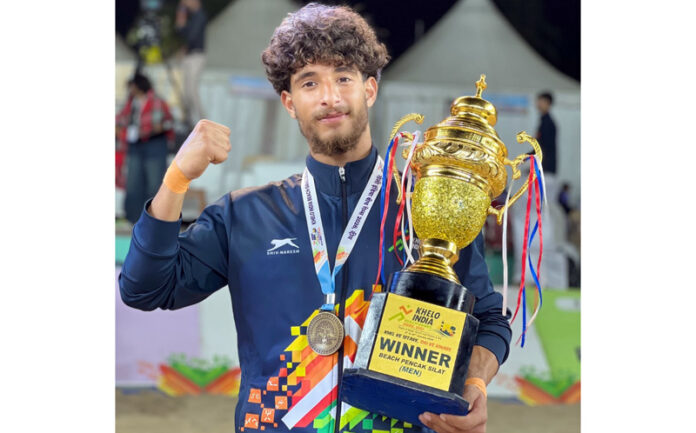 Shahid Hilal of Silat Macan Kumbang, Ellahi Bagh Stadium, Srinagar, won the gold medal in the 60-65 kg weight category at the 2nd Edition of the Khelo India Beach Games (KIBG) 2026, held in Diu.