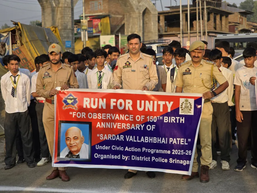 In a spirited celebration of national unity and patriotism, Srinagar Police organized a large-scale “Run for Unity” across juridictions of Police Stations Nishat, Batmaloo, Shaheedganj, Nowgam, Panthachowk, MR Ganj, Harwan, Rainawari, Sangam, Shalteng, Maisuma, Ahmadnagar, Bemina, Nowhatta in the District to mark the 150th birth anniversary of Sardar Vallabhbhai Patel, revered as the Iron Man of India.